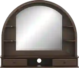 This mirror is crafted with high-quality beveled glass, providing a sophisticated, finished edge that enhances light reflection and adds a sense of depth to the room. The glass is securely housed within a transitional arched frame built with Mindi veneers, a material selected for its beautiful grain and reliable durability.