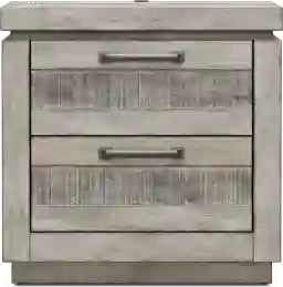 This nightstand is constructed with a frame of pine, a material selected for its natural durability and resilience in active environments. By using pine veneers in a multi-tone gray finish, the piece offers the sturdy feel of solid wood furniture while maintaining a smooth, consistent surface that is less prone to the warping or cracking often seen in lower-quality materials.
