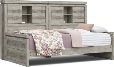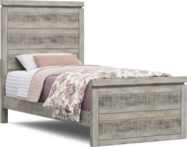 Give your child a stunning rustic retreat they'll love coming home to with the Westover Hills Jr. twin bed. Crafted with pine veneers in a striking multi-tone gray finish, this bed features plenty of storage for books, pictures, and your loved one's other favorite items. Mattress and foundation (if required) sold separately.