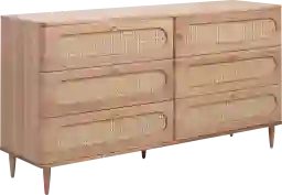 The Laertes light brown dresser offers a gorgeous blend of textures and soft hues to make your space feel not only sleek and modern, but also warm and inviting. These wooden pieces have minimalistic clean lines while adding a unique spin with their exquisite cane details. Customer assembly is required.