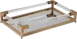 This tray is built with a hand-forged iron frame, providing exceptional structural integrity and weight that prevents it from warping or bending over time. The frame is finished with hand-applied, lightly antiqued gold leaf and accented with suspended, solid acrylic square bars. These premium materials are chosen not only for their modern aesthetic but for their ability to withstand the frequent movement and use required of a high-end serving piece.