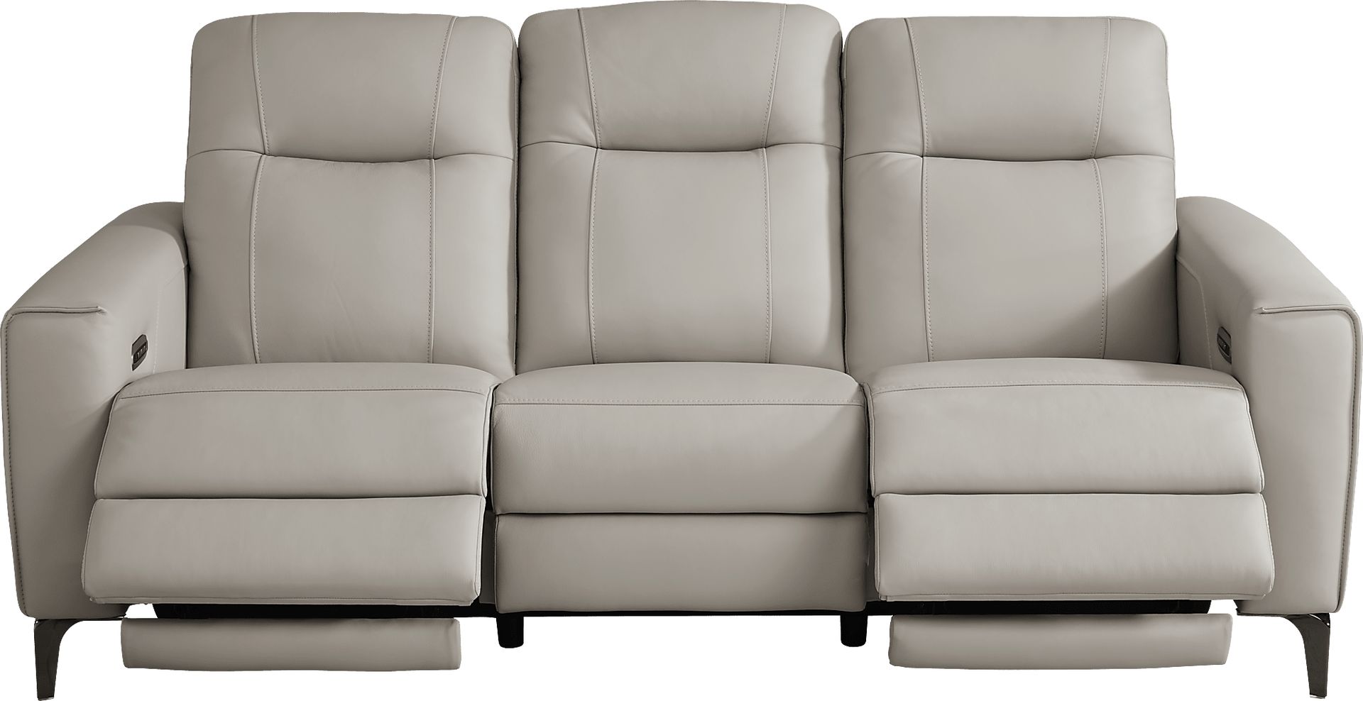 A sleek design and upscale vibe make the Drew & Jonathan Parkside Heights reclining sofa the ultimate lounging experience for your living space. Upholstered in top grain leather where the body touches, this modern piece features sophisticated track arms, textured stitching for a provocative visual element and tapered legs with a nickel finish. The dual power reclining function allows adjustment in the headrest and footrest for optimal relief and relaxation. Upholstery: Top grain leather where the body touches. Polyurethane sides and back.
