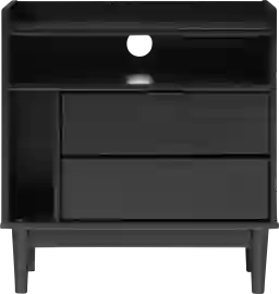 With an array of open and closed storage, the Symelo nightstand will effortlessly evoke a sense of functional elegance into your sanctuary. Embrace a mid-century modern aesthetic with its gallery top and tapered wood legs, while sleek metal drawer pulls impart a subtle modernity. Use the two spacious drawers to tuck away clutter and slip books, magazines, and other bedtime essentials into the open cubbies. Whether you use it as a couch side storage companion or at your bedside for easily accessible nighttime necessities, this solid pine wood piece offers a versatile and timeless take on sustainably stylish interiors. Customer assembly is required.