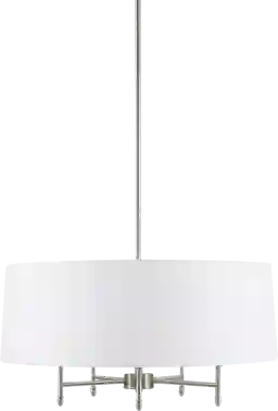 Introduce a gorgeous transitional look to your decor with Upsal Estates chandelier. Featuring a white tapered fabric shade that is able to tilt, this transitional chandelier adds a touch of elegance with the silver finish on the metal frame and ceiling cover. Creates a stunning display to illuminate your kitchen or living room. Professional installation by an electrician is recommended.