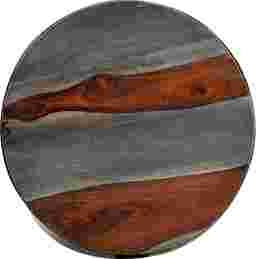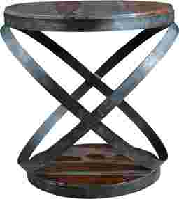 Bands of iron encircle the rich solid wood base and top on this artfully designed Gabeheart accent table, appearing to orbit the open space between. The graywash finish of the sheesham-like wood emphasizes the dramatic graining, and is complemented by the worn finish of the metal. This is definitely a piece that will not be lost in any room, just add your favorite books or photos and enjoy.