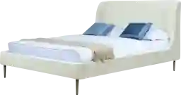The Galerita cream queen bed anchors your bedroom in glam, mid-century-inspired style. It's built with an engineered wood frame and features understated side rails and footboard for a clean-lined silhouette. The headboard has a curving wingback design and is wrapped in velvet for a luxe look. Plus, it's filled with foam for some extra cushion behind your head. Tapered gold-finished legs support the bed with a retro aesthetic. This bed arrives with slats and a center support leg, so you don't have to use a box spring with your choice of mattress. Customer assembly is required.