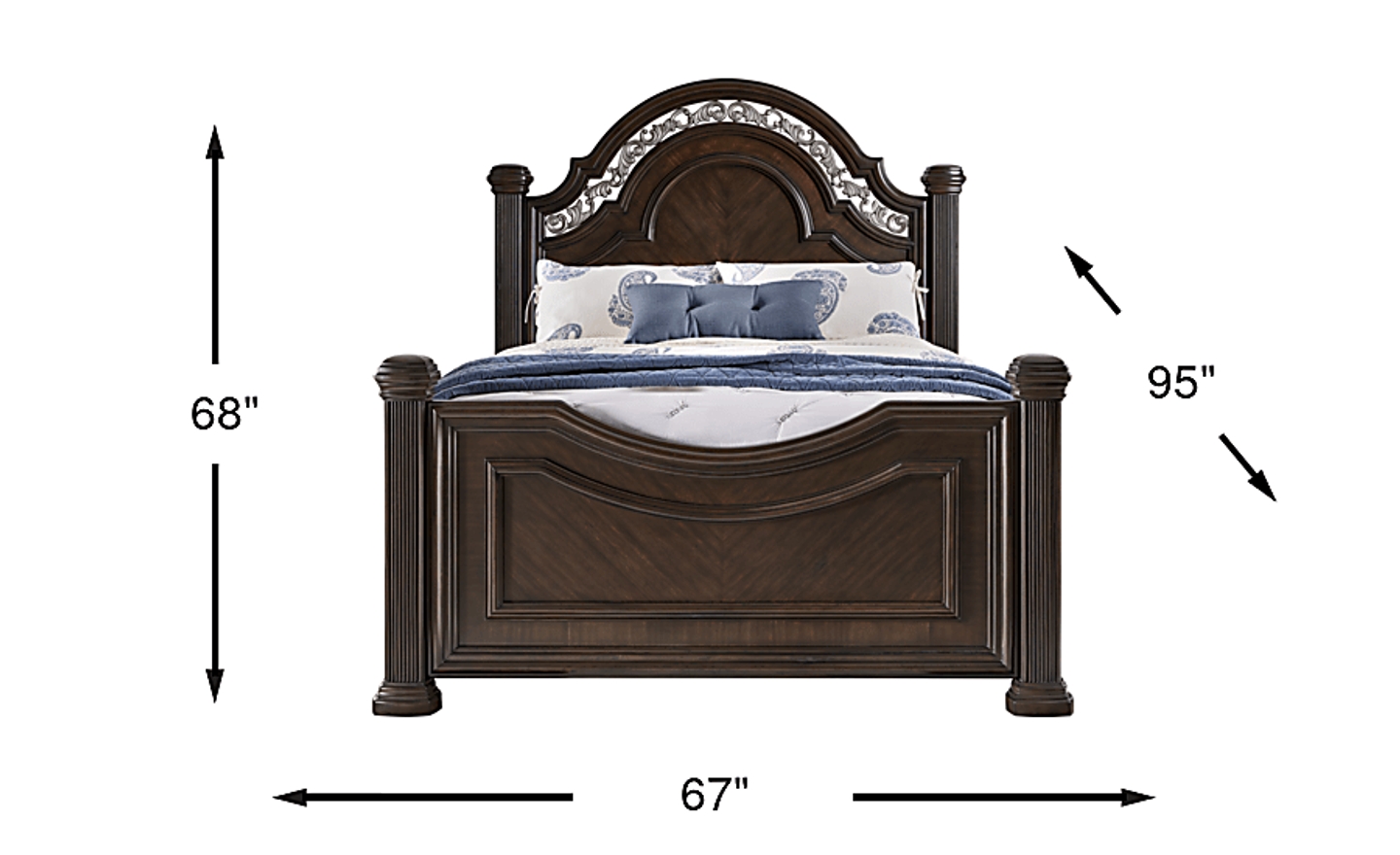 With refined poise and a glint of sprightly charm, the Gallagher Avenue bed offers a noble start to every single day. The handsome textures of this traditional piece are rendered in acacia veneers with a rich brown finish. Reeded bed posts, a framed footboard and the headboard with contrasting silver scroll details showcase a variety of European influences in this design. Mattress and foundation (if required) sold separately.