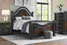 With refined poise and a glint of sprightly charm, the Gallagher Avenue bed offers a noble start to every single day. The handsome textures of this traditional piece are rendered in acacia veneers with a rich brown finish. Reeded bed posts, a framed footboard and the headboard with contrasting silver scroll details showcase a variety of European influences in this design. Mattress and foundation (if required) sold separately.