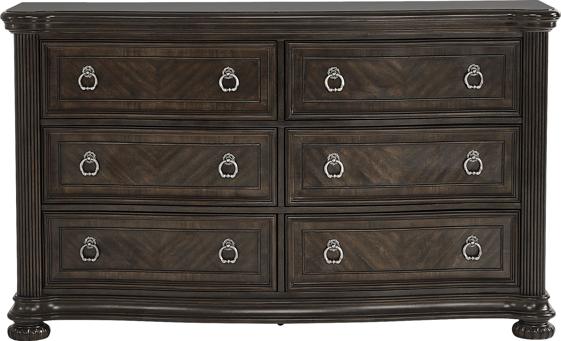 With refined poise and a glint of sprightly charm, the Gallagher Avenue dresser offers a noble start to every single day. The handsome textures of this traditional piece are rendered in acacia veneers with a rich brown finish. Reeded corner posts, detailed bun feet and metal ring pulls on each of its six drawers showcase the variety of European influences in this design.