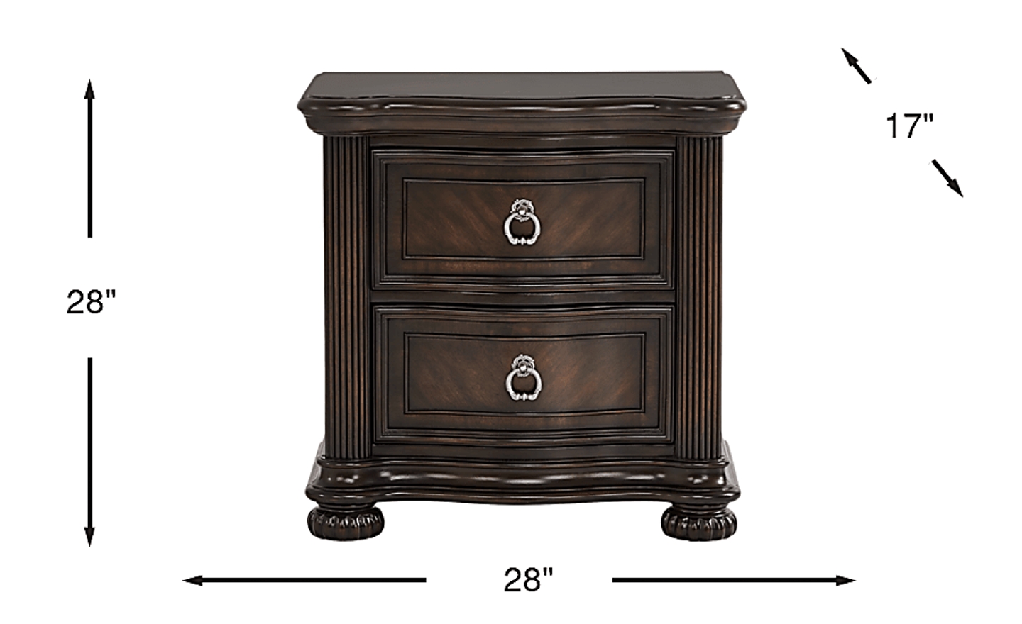 With refined poise and a glint of sprightly charm, the Gallagher Avenue nightstand offers a noble start to every single day. The handsome textures of this traditional piece are rendered in acacia veneers with a rich brown finish. Reeded corner posts, detailed bun feet and metal ring pulls on both of its drawers showcase the variety of European influences in this design.