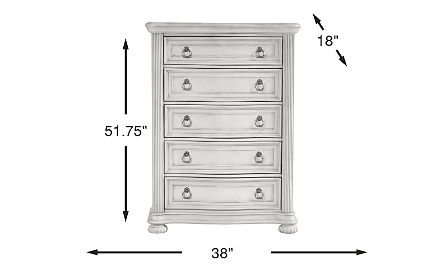 With refined poise and a glint of sprightly charm, the Gallagher Avenue chest offers a noble start to every single day. The handsome textures of this traditional piece are rendered in acacia veneers with a serene white finish. Reeded corner posts, detailed bun feet and metal ring pulls on each of its five drawers showcase the variety of European influences in this design.