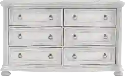 With refined poise and a glint of sprightly charm, the Gallagher Avenue dresser offers a noble start to every single day. The handsome textures of this traditional piece are rendered in acacia veneers with a serene white finish. Reeded corner posts, detailed bun feet and metal ring pulls on each of its six drawers showcase the variety of European influences in this design.