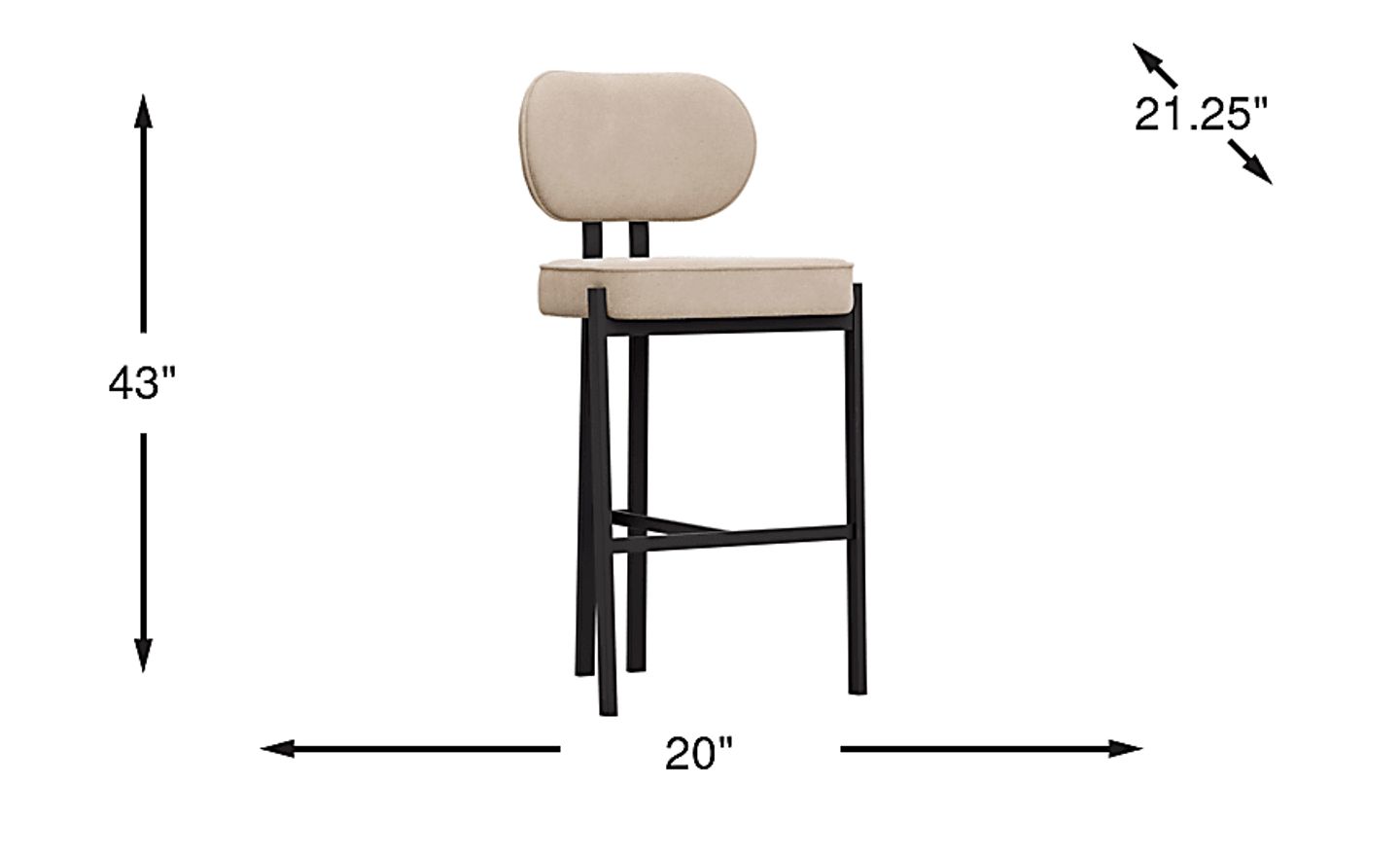 This stool is an excellent choice for smaller spaces. With a width of 20 inches and an open, asymmetrical leg design, it maintains a light visual footprint. The black metal legs allow light to pass through the base, which helps prevent a compact breakfast bar from feeling crowded, while the cream upholstery adds a bright, airy feel to the room.