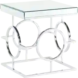 This table is constructed with a sturdy metal base featuring a chrome finish and a unique, intricate geometric design. The straight-leg style provides a solid foundation, ensuring stability for lamps, decorative accents, or beverages. For maximum longevity, we recommend placing it on an even surface and using coasters to protect the mirrored glass from scratches.