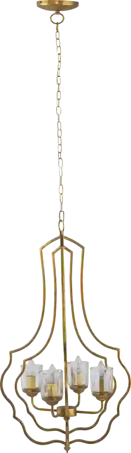 Brighten your interior with the exceptionally graceful Galway Trail chandelier. The sculptural metal frame with glass light covers makes a dramatic statement with its curves, angles, and antique gold finish. Outfit with four candelabra-style bulbs and hang anywhere that could use an elegant focal point. Professional installation by an electrician is recommended.