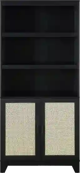 The Gansons black bookcase brings a mix of tradition and modernity. The cane furniture blends traditional materials and techniques with contemporary designs, resulting in a unique fusion. It adds a touch of timeless elegance while still feeling fresh and modern. The woven patterns of cane create a visual and texture appeal making your room warm and inviting. Customer assembly is required.