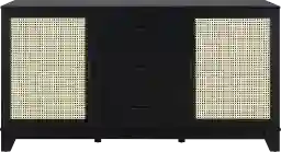 This server is engineered for high-capacity organization, featuring three central drawers and two side doors. The drawers are ideal for categorizing silverware, serving utensils, and linens, while the cabinets behind the woven cane doors offer generous vertical space for larger platters, china sets, or seasonal serveware.