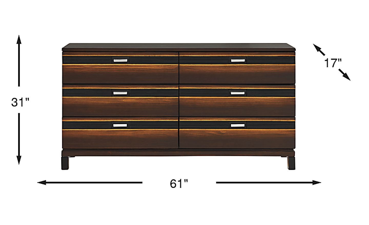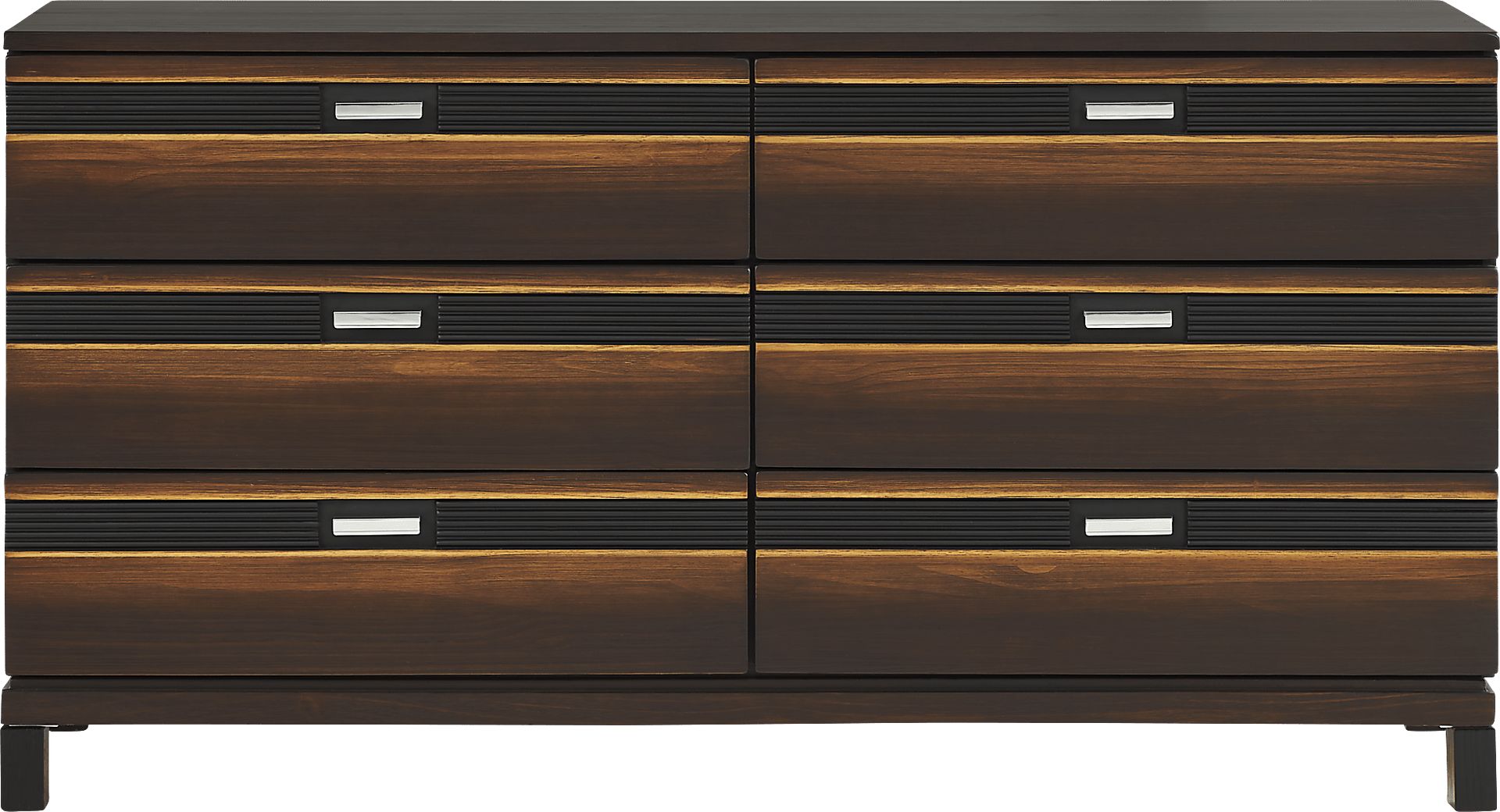 Wake up every morning to rich design and handsome textures that bring beautiful new horizons into your bedroom with the Gardenia dresser. This dresser features horizontal reeded inlays and a rich brown gradient finish for an instant classic. Polished chrome pulls give this dresser a refined pop of contrast, and a hidden jewelry organizer adds versatility and convenience.