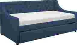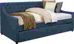 The Gartley daybed is designed with the modern traditional home in mind. It features a trundle that provides the extra space you need for overnight guests. The modern silhouette covered in a blue tone linen fabric complements the traditional button-tufted back panel. Customer assembly is required. Foundation not required. Mattress sold separately.