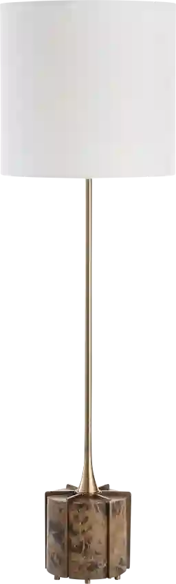 This lamp features a base crafted from solid dark brown marble, a material prized in high-end furniture for its exceptional density and natural weight. Unlike lighter ceramic or plastic alternatives, this marble base provides superior stability, making it significantly more resistant to tipping. The fluted texture is not only a hallmark of transitional design but also adds structural rigidity to the natural stone.