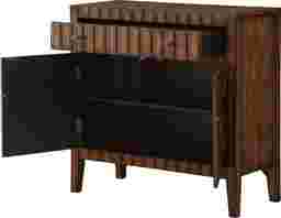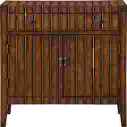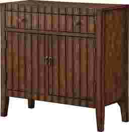 A slatted lathe pattern goes up the front and across the top for a different and quite distinctive design. Finished in a dark woody brown, this cabinet boasts antiqued metal hardware, a spacious upper drawer and two doors below that open to a roomy shelved interior. Ideal for your den, library or that special man cave.