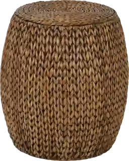 Discover the perfect blend of transitional and contemporary design with the Gatala end table. Handcrafted in an elegant drum shape, this table boasts sturdy construction using plywood and woven banana leaf. Its rich finish and unique weave seamlessly complement any decor. Ideal as an accent or end table, it adds a touch of charm to your den, living room, study, or any space in your home. A true decorative and functional conversation starter.