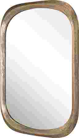 Crafted from cast aluminum and finished in a plated antique brass, the Gatti mirror features subtle texture and imperfections for a hand crafted appeal. May be hung horizontal or vertical.