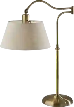 With a touch of urban edge, the Gatx View lamp modernizes the traditional bridge lamp, giving it an adjustable swing arm in addition to a curved silhouette. The swing arm rotates horizontally, while the shade can be adjusted vertically and secured with a locking key joint, allowing you to direct the light wherever it's needed. A textured cream colored drum shade brightens the design, softly distilling the light from a 60W bulb, while the antique brass finish adds mid-century modern flair. Partial assembly may be required.