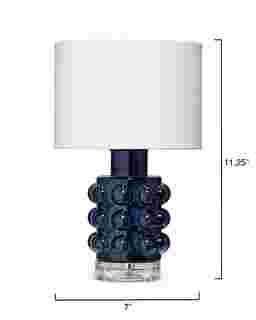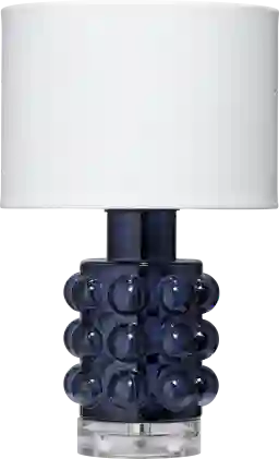 Bold yet refined, the Geldo Blue Lamp feels like a jewel softly glowing in the evening-the deep, inky blue glass base adorned with sculptural bubbles that catch and reflect light like quiet sparks, grounded by a clear acrylic foot and crowned with a crisp white shade that brings balance and calm. It's modern with a hint of glamour, artistic without trying too hard, the kind of piece that instantly elevates a room and makes it feel thoughtfully curated, so bring it into your home and let its luminous presence turn everyday moments into something beautifully intentional. Partial assembly may be required.