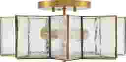 The clear glass shade is designed for maximum light distribution, providing bright, ambient illumination that fills the room. To minimize glare and enhance the fixture's vintage-modern aesthetic, we recommend using decorative Edison-style bulbs with a warmer color temperature. This combination allows the geometric iron frame and brass finish to stand out while creating a comfortable, inviting glow.