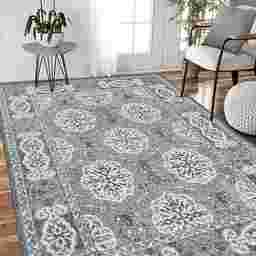 This rug is specifically designed for active households. The soft, tightly woven polypropylene fibers are resistant to snags from pet claws and are gentle enough for children to play on. Additionally, the updated Oriental pattern and deep blue and gray color palette are strategically chosen to help disguise minor dirt or pet hair between cleanings.
