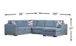 The overall dimensions of the sectional are 126"w x 95"d x 37"h. To ensure a smooth delivery, we recommend measuring all hallways, entryways, and staircases. While the piece is delivered in three components to facilitate transport, your path should ideally accommodate the depth and height of the individual pieces. Our delivery guidelines suggest ensuring a minimum doorway clearance that matches the smallest dimension of the packaged sections.