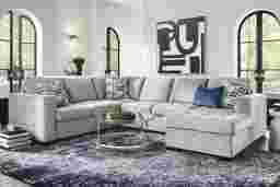 The confident, classy personality of the Geneva sectional takes grounded and crowd-pleasing design to stylish new heights. Cutting a unique modern silhouette in textured gray fabric, this sofa features big, bold track arms with tufting on the sides. The seats feature tufting to match, with attached cushions that stay comfortably in place when it's time for the pop-up sleeper to make its debut for the night. Hidden in the end chaise is a convenient storage space perfect for stowing blankets. Included with the piece, a coordinating set of accent pillows can be rearranged for maximum comfort. Upholstery: 87% Polyester, 13% Polypropylene.