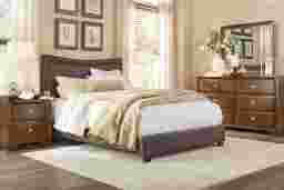 Strikingly stylish with a handsome contemporary design, the Genoa bed is the perfect focal point for your bedroom. Upholstered in brown UltraHyde fabric, this stylish bed features a reverse arched headboard accented with chic silver finished nailhead trim. Mattress and foundation (if required) sold separately. Bed shown is queen size. Bed board required for mattress support.