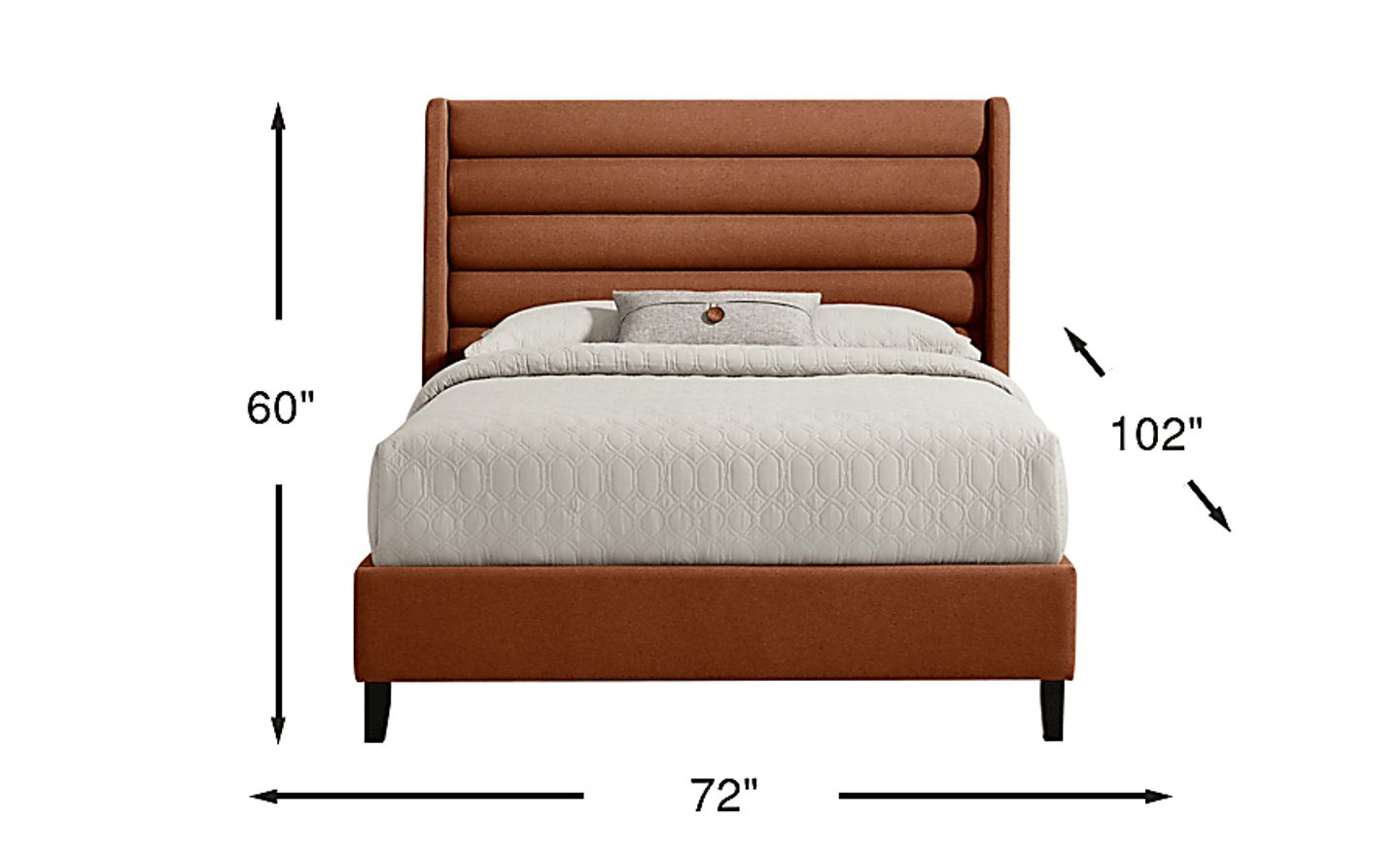 Feel the grounded design of a well-styled retreat come to life through the Genovia collection's sculpted lines and refined details. Traditional in style, this bed is fully upholstered in a rusty-red fabric that brings supple texture and serene warmth to any bedroom. The wingback headboard features deep horizontal tufting for a tailored look, while the platform base rests on black tapered legs that add a sleek, modern finish. Mattress and foundation (if required) sold separately. Upholstery: 100% polyester.