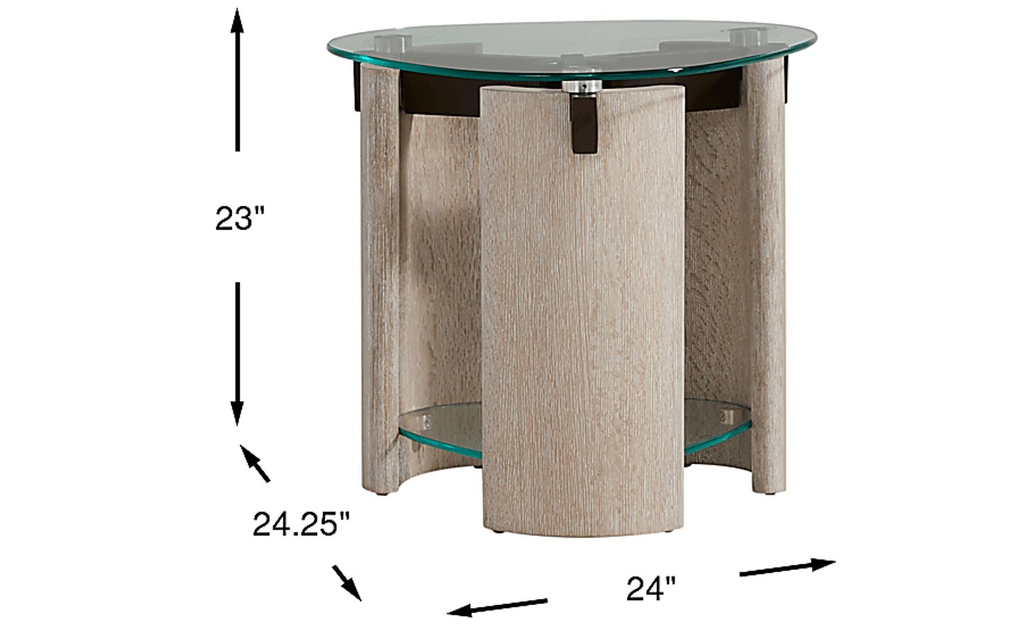 The Giannis end table stands at 23 inches high, which is perfectly sized for most standard contemporary sofas. For optimal comfort and aesthetics, an end table should ideally be within 2 inches of your sofa's armrest height. This ensures that items like drinks or lamps are within easy reach while maintaining a balanced silhouette in your living room.