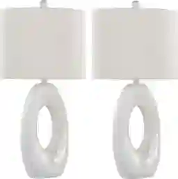 Transform your space with our Giese Place White Lamp, Set of 2, featuring a lustrous pearl shell finish on its base. Crafted with a sleek matte poly design and paired with a linen shade, this lamp exudes contemporary elegance. Partial assembly may be required.