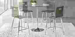Dine in style with the contemporary design of the Gilmer counter height table. Featuring a silver finished pedestal base, this sleek table's round glass top is both chic and easy to clean.