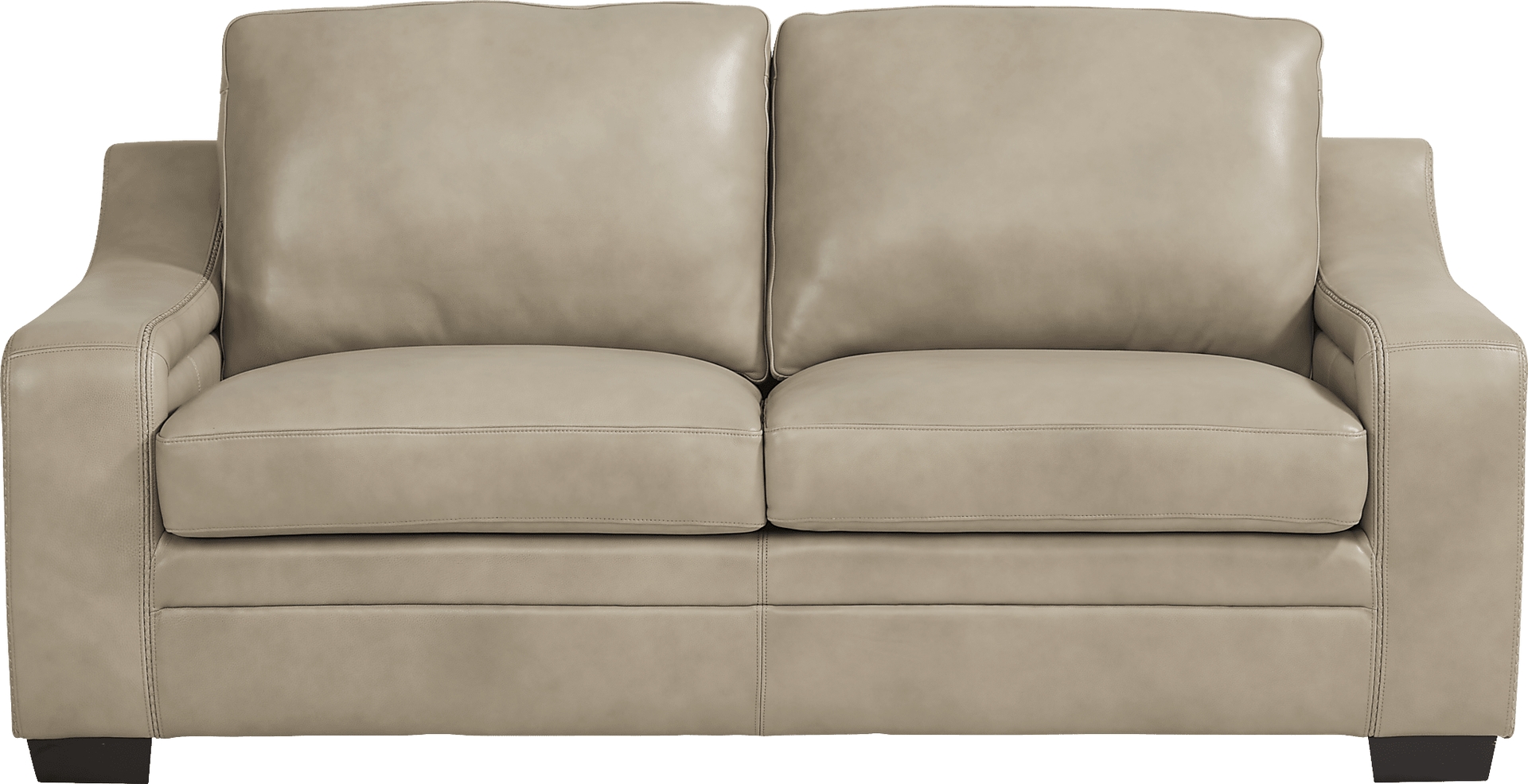Ideal for smaller spaces, the Gisella apartment sofa offers comfortable seating for two. The transitional sofa, rendered in a decorator friendly taupe color, is upholstered in supple top grain leather where the body touches. It features two seat cushions nestled between track arms. Decorative stitching detail lends a tailored touch that catches the eye. Upholstery: Top grain leather where the body touches and vinyl sides and backs.