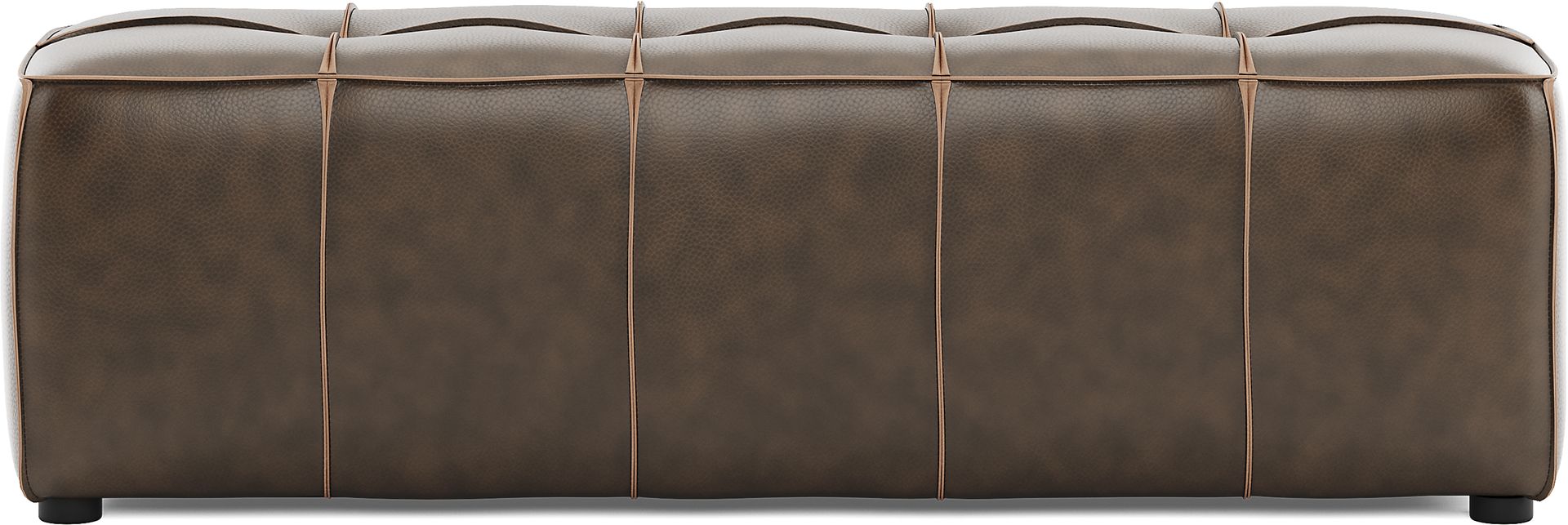 Refined sophistication with a soft intelligence makes the Giselle bench the ideal accessory for effortless style. Upholstered with top grain leather in a rich chocolate color, the angles and lines of this piece feature welted seams that accentuate every detail. A biscuit-tufted seat provides a luxurious surface on top, while tapered legs punctuate the look with a poised final touch. Upholstery: 100% Top grain leather