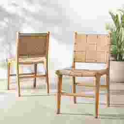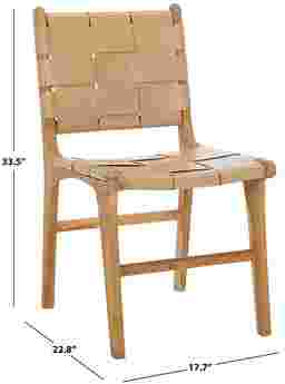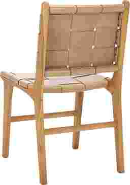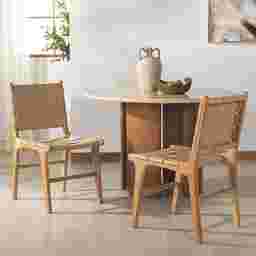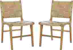 This Givernola tan chair set blends traditional craftsmanship with modern design. Featuring a hand-woven black top grain leather seat and a sturdy teak wood frame, it offers lasting comfort and timeless style. A versatile piece that elevates any dining space. Customer assembly required.