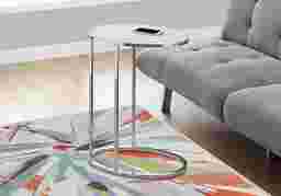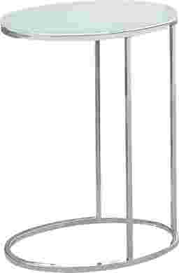 The modern oval Gladeside accent table is the perfect combination of style and functionality. With a frosted tempered glass table top and oval chrome base this accent table will add a contemporary touch to your living space. Designed to easily slip under your sofa to keep it conveniently close, this is the ideal accent table to hold your drinks, snacks, meals, or electronic devices. A truly versatile table for your living room, family room, den, or office. Weight Capacity 22lbs. Customer assembly required.