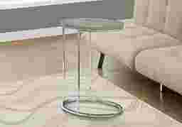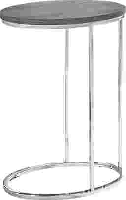 This modern oval Gladeside accent table is the perfect combination of style and functionality. With an oval dark taupe wood-look table top and oval chrome base, this accent table will add a contemporary touch to your living space. Designed to easily slip under your sofa to keep it conveniently close, this is the ideal accent table to hold your drinks, snacks, meals, or electronic devices. A truly versatile table for your living room, family room, den, or office. Weight Capacity 22lbs. Customer assembly required.