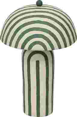 Absolutely. Bold stripes act as a "geometric neutral," meaning they pair surprisingly well with other patterns. To create a curated, professional look, try pairing this lamp with solid-colored furniture or subtle floral prints. The green stripes provide a punchy personality that can anchor a room’s color palette, especially when styled near neutral-toned sofas or natural wood accents.