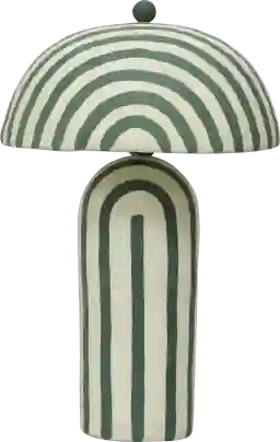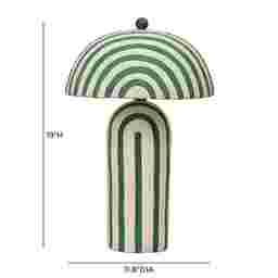 Illuminate your space with the charming Gladys Lane Green Lamp, featuring a beautiful, bold silhouette crafted from innovative paper mache construction. The lamp's punchy stripes add a playful touch, complemented by a domed lampshade and an adorable orb finial. This lamp effortlessly adds striking personality to any space, making it a delightful and stylish accent for your home. Partial assembly may be required.