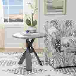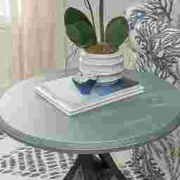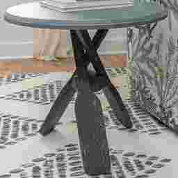 For the boat enthusiast or just a lover of unique coastal found items, the Glascour side table has it all. The perfect accent to a naval or fishing themed room. Darker blue oars make up the base foundation supporting a beveled wood table top in a distressed faded blue finish. A terrific anywhere table, this is a real find. Customer assembly required.