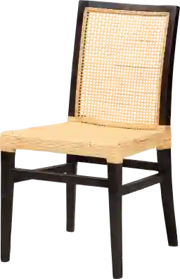 Bring a tranquil, carefree quality to every dining occasion with the enchanting design of the Glassmann brown side chair. This bohemian piece consists of a solid mahogany wood frame wrapped in natural rattan. Its square seat and backrest feature tightly woven embellishments for a smooth embrace that enables light to flow naturally throughout the room. The Glassmann utilizes tapered legs for excellent stability and support in sleek design. Presenting traditional craftsmanship with an exotic twist, the Glassmann brings charming character to any arrangement. Due to the nature of the natural materials used in this product, it may have variations in areas such as, but not limited to, color, pattern, grain and texture. The hair-like strands of rattan/rattan-fiber are common due to the nature of the material.