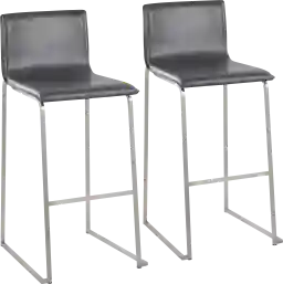 Elegant and modern, the Glatigny barstool set has a simple design with gorgeous elements. Featuring faux leather upholstery and a metal base with a built-in footrest, the Glatigny barstool set is perfect for your kitchen or dining area. Customer assembly is required.