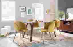 Surround your dining table with the beauty of the Glenburnie dining side chair. Featuring a sophisticated velvet upholstery that will tie in perfectly with your contemporary decor, this ultra comfortable padded bucket seat is complimented by tapered walnut wood legs. Customer assembly is required.