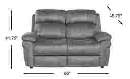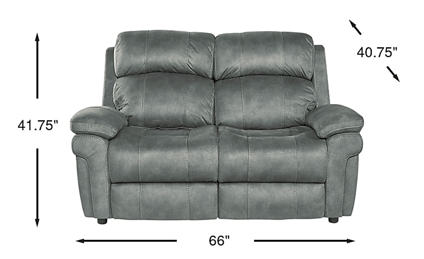 Seating for two reaches new heights of comfort with the Glendale loveseat. Made for relaxing movie nights and watching the big game, the loveseat is upholstered in suede soft Micofiber fabric in a charcoal color. Contoured bucket seats and pillow top arms add cozy elements while contrasting baseball style stitching detail adds just the right finishing touch. 100% Polyester.